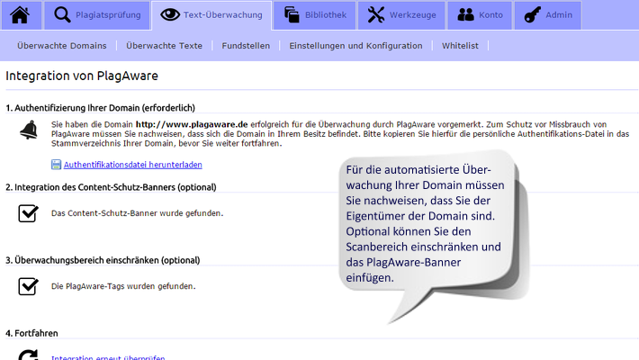 Demo: Eine Website mit PlagAware auf Contentklau überwachen